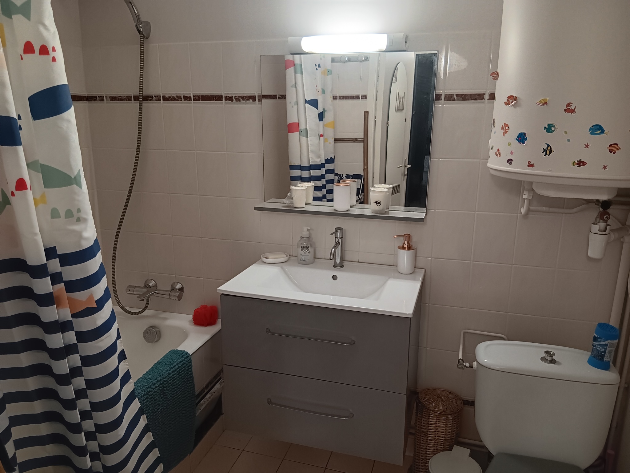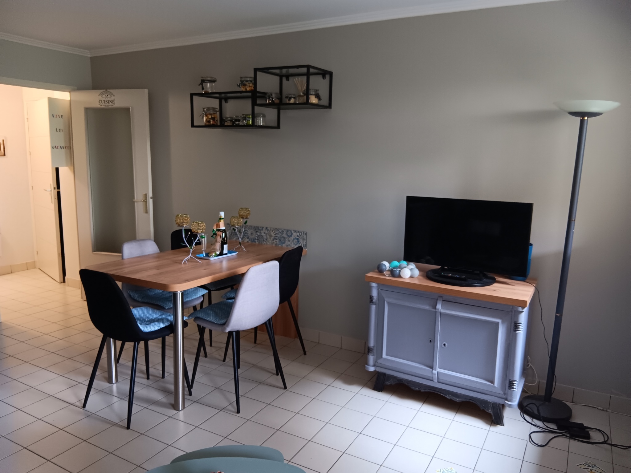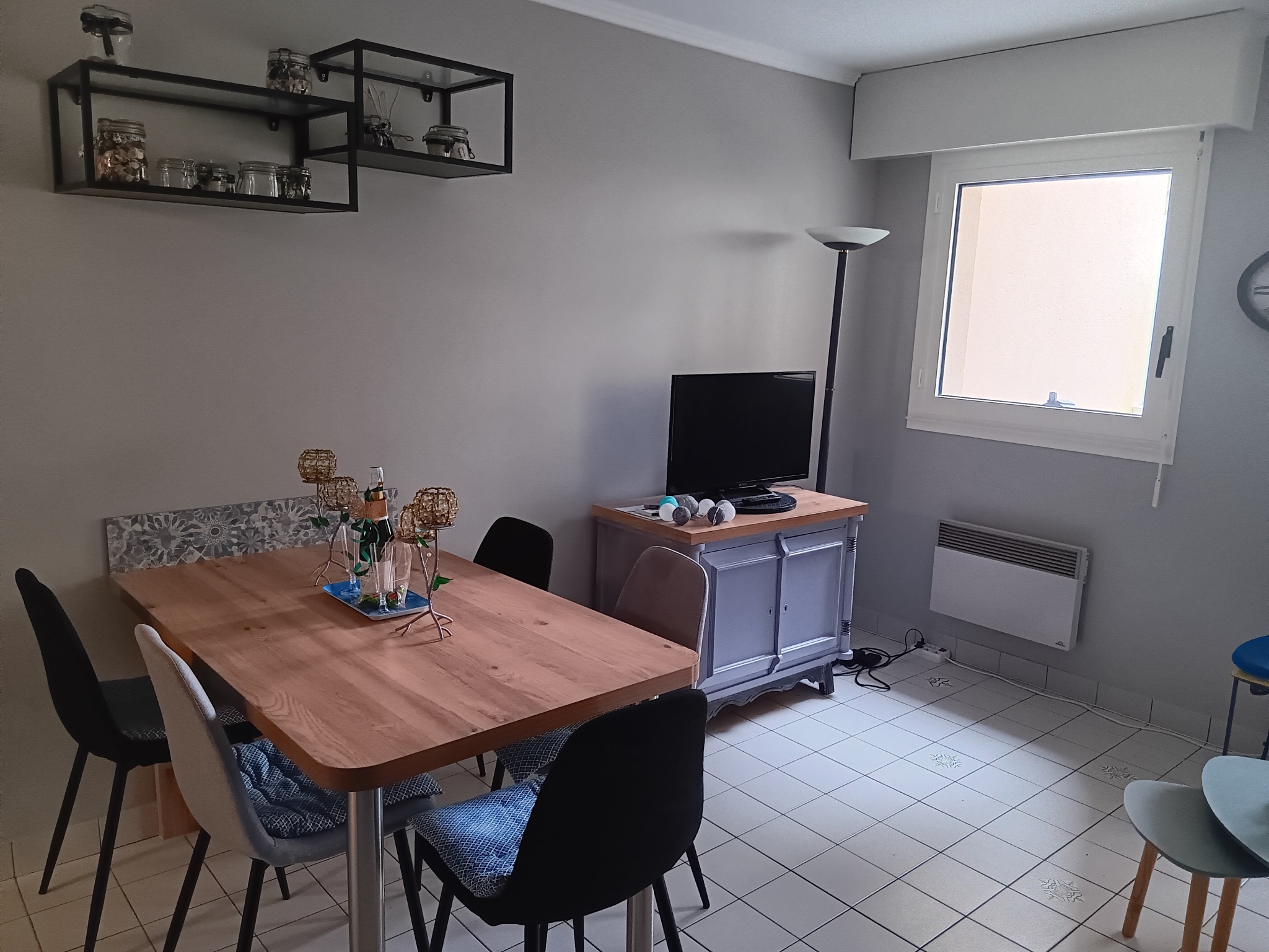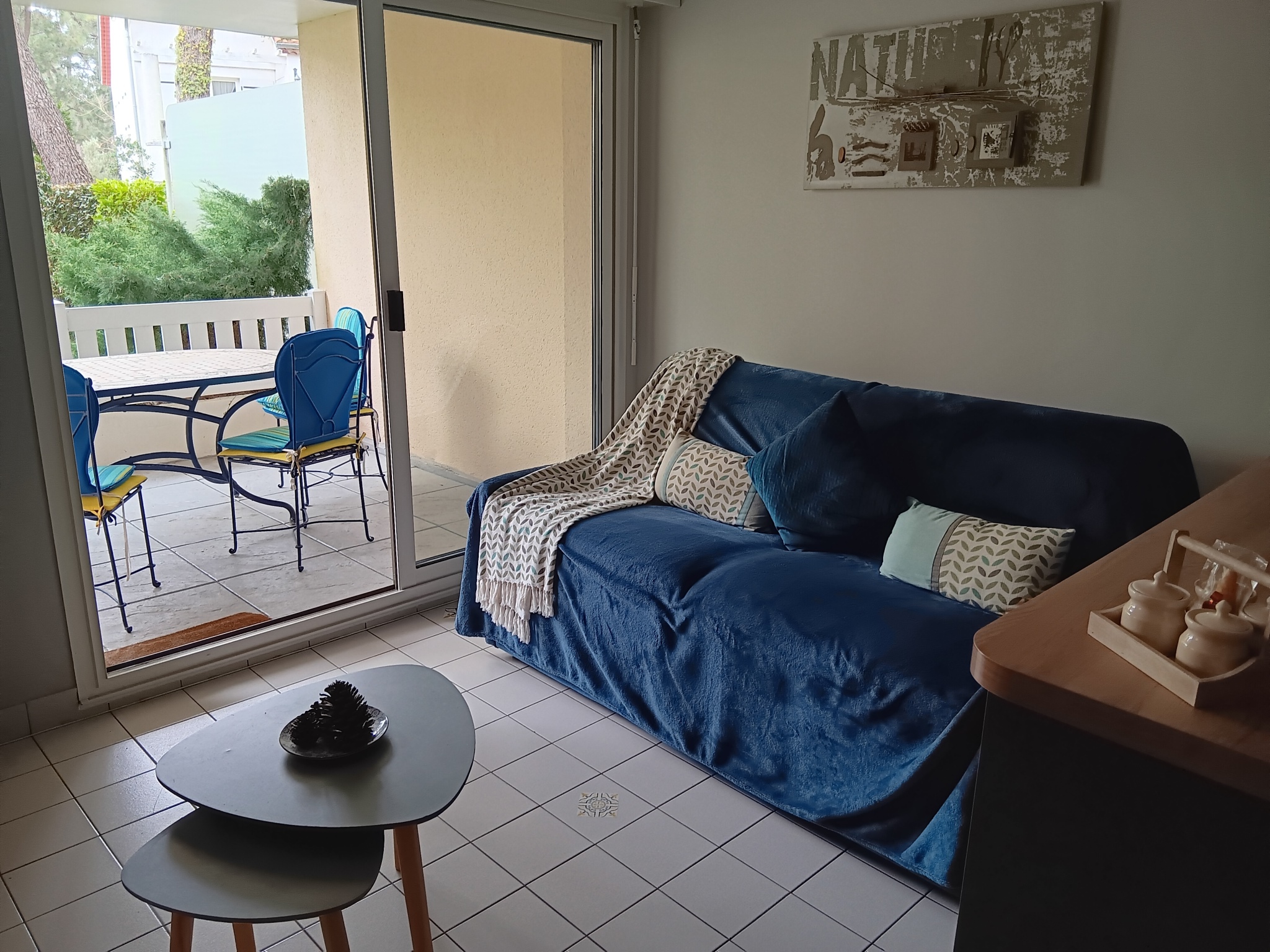 Petit T3 d'environ 40 m², idéalement situé, au calme et près des commerces de l'av Lajarrige, à 600 m env de la plage. Il se compose de : Séjour avec canapé-lit 2 pers, téléviseur - Terrasse abritée expo Ouest avec salon de jardin - Coin-cuisine avec réfrigérateur/conservateur, lave-linge, lave-vaisselle, four, micro-ondes, table de cuisson 3 feux, hotte - 1 petite chambre avec 2 lits superposés - 1 chambre avec 1 lit 2 pers et armoire - Salle de bains avec baignoire, lavabo, WC - Grand garage ss/sol fermé
