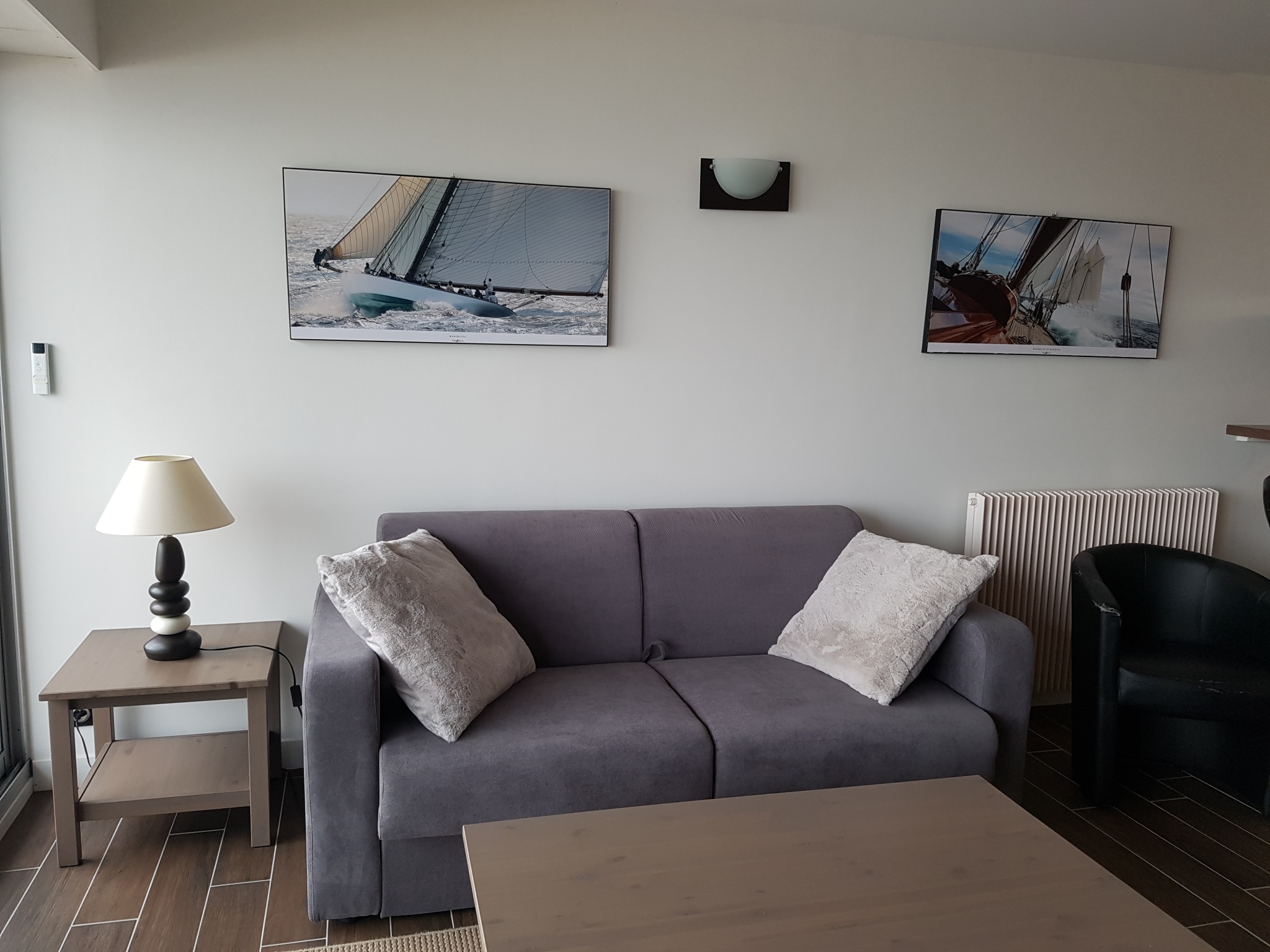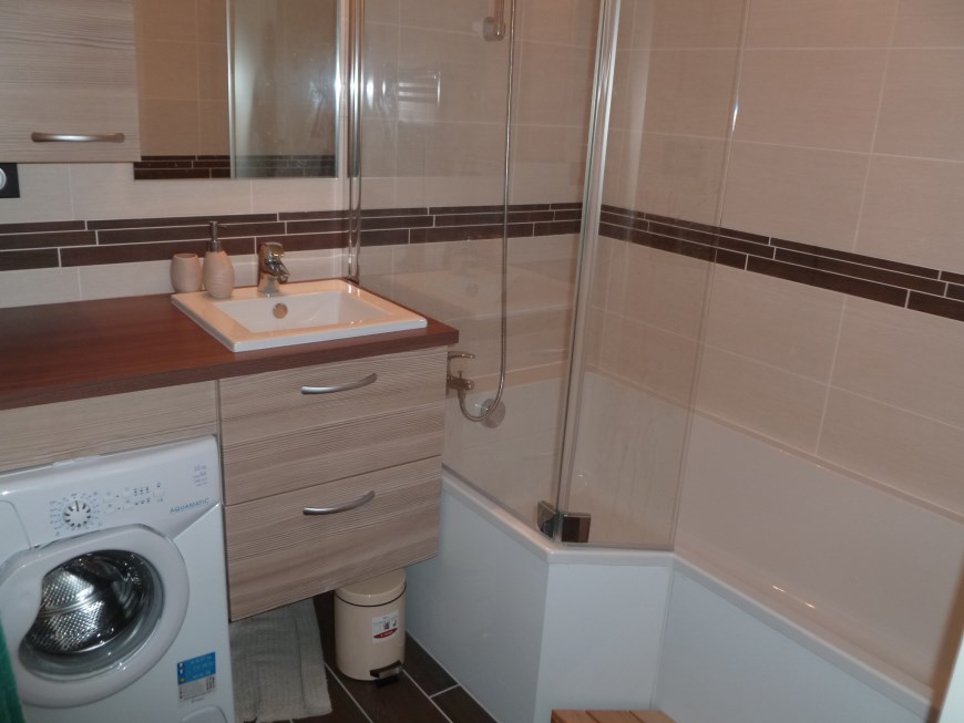 Bel appartement dans une résidence avec ascenseur proche av Lajarrige. Il se compose de : séjour-salon avec 1 canapé convertible (couchage 2 pers), téléviseur, coin-repas 4 pers - Cuisine ouverte équipée de : four traditionnel , micro-ondes, table de cuisson induction, grand réfrigérateur avec partie congélateur, lave-vaisselle 6 couverts, chaudière gaz - Salle de bains avec lavabo, baignoire, lave-linge 3,5kg - WC indépendants - 1 chambre à l'arrière avec 1 lit de 2 pers (dimensions 160 X 200 cm) - Terrasse face mer avec salon de jardin 4 pers - 1 parking 1er sous-sol n°22 - ANIMAUX NON ACCEPTES.