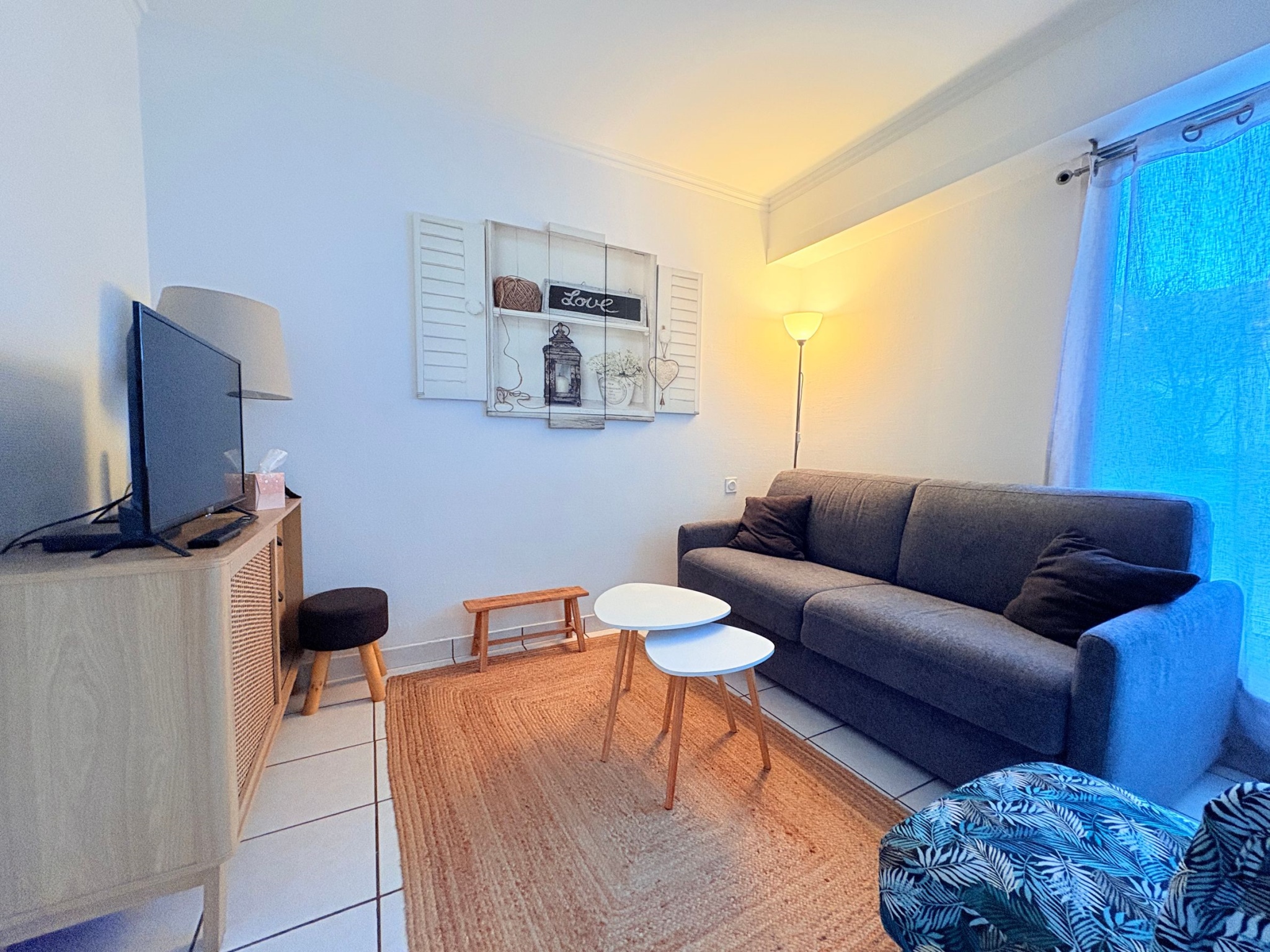 STUDIO situé à l'arrière d'un immeuble du front de mer à PORNICHET. Il dispose d'un séjour avec canapé-lit et téléviseur, coin-cuisine amanagé/équipé (réfrigérateur/congélateur, mini-four, micro-ondes, plaque de cuisson halogène), grande terrasse avec mobilier, salle de bains avec wc, 1 place de stationnement extérieur. WI FI disponible.