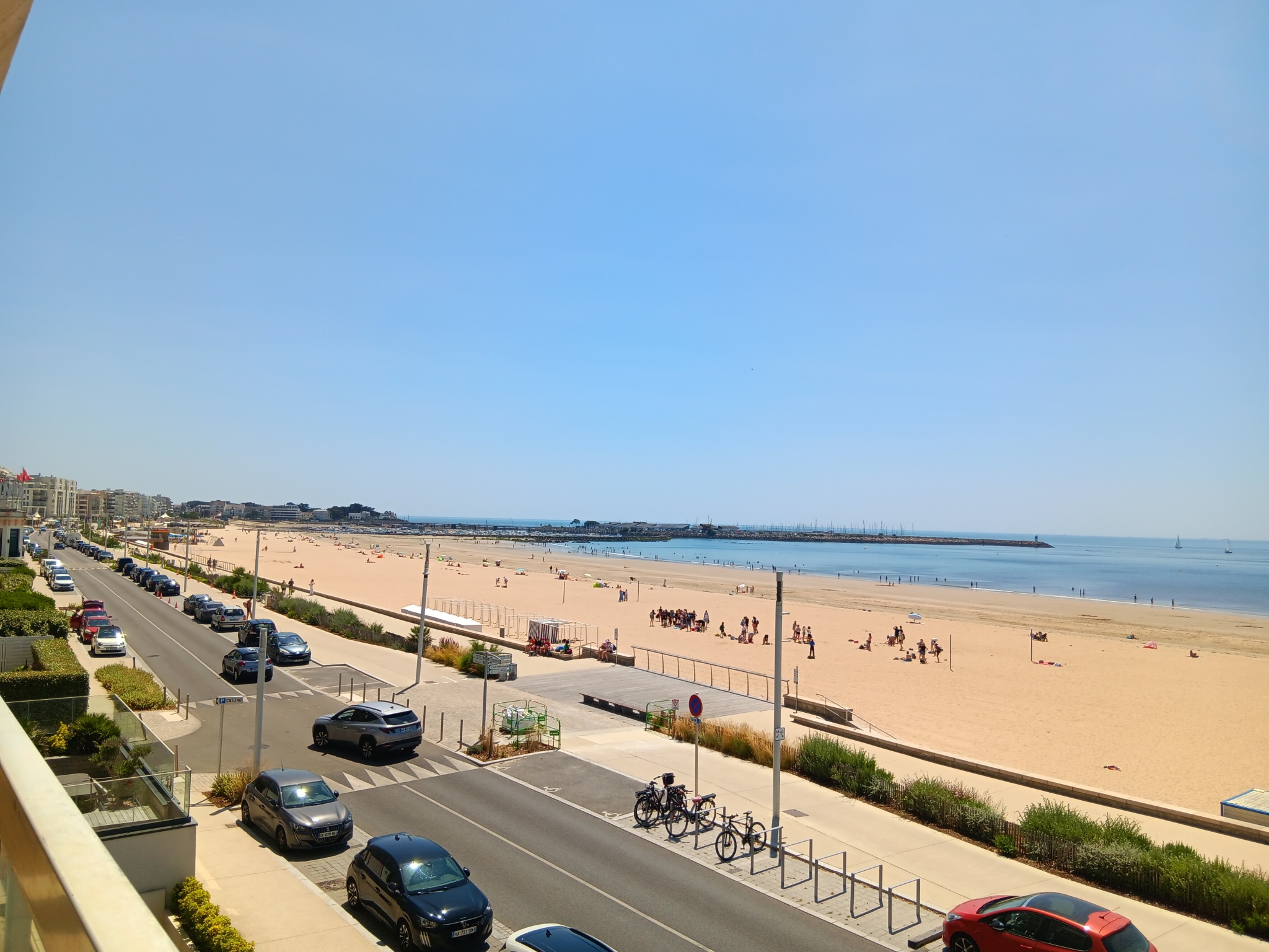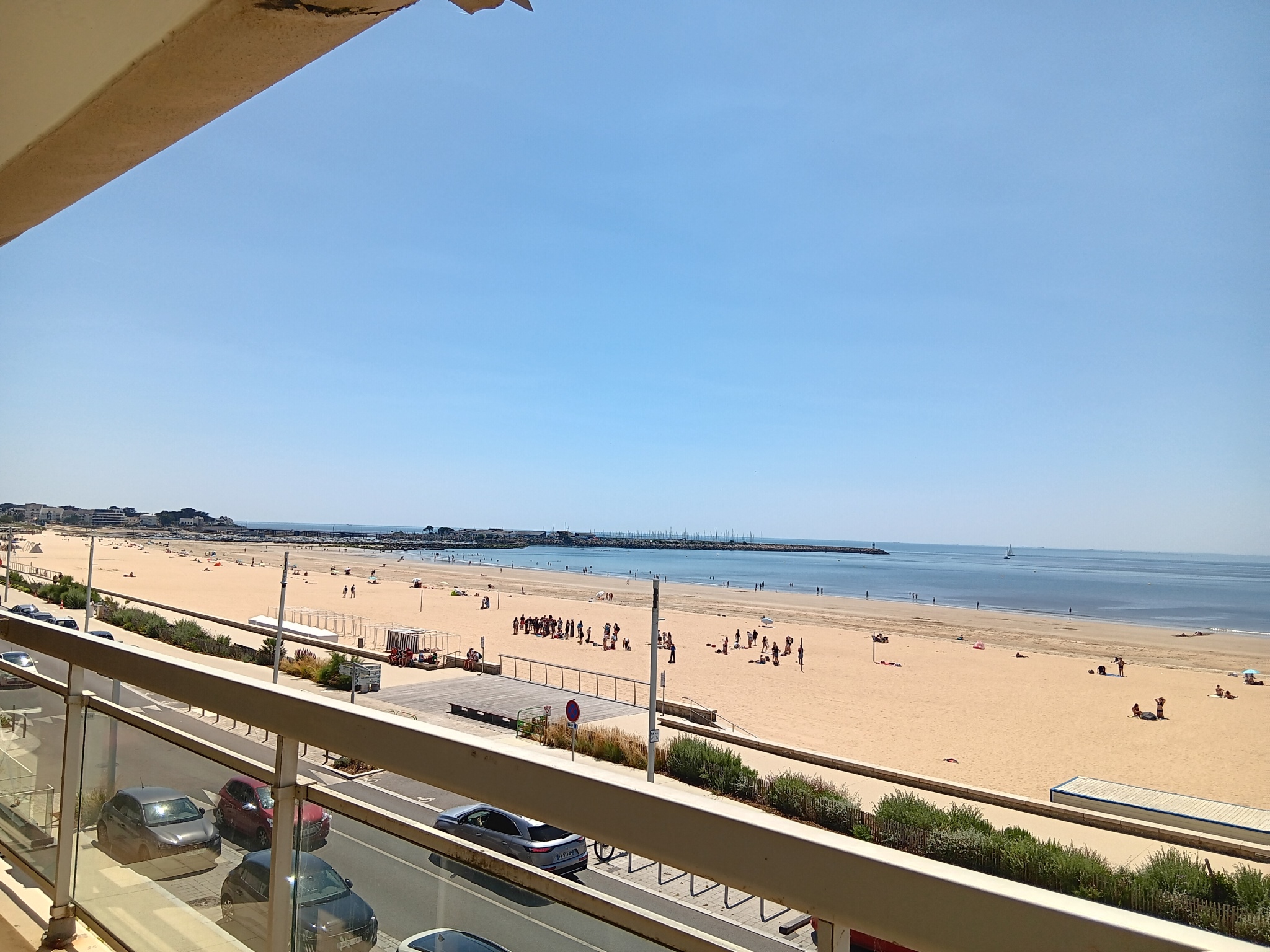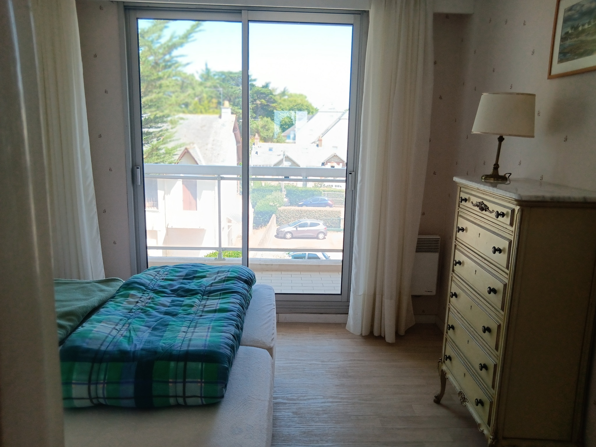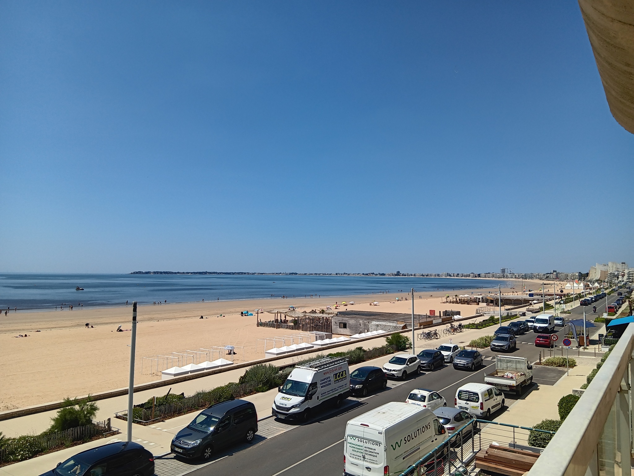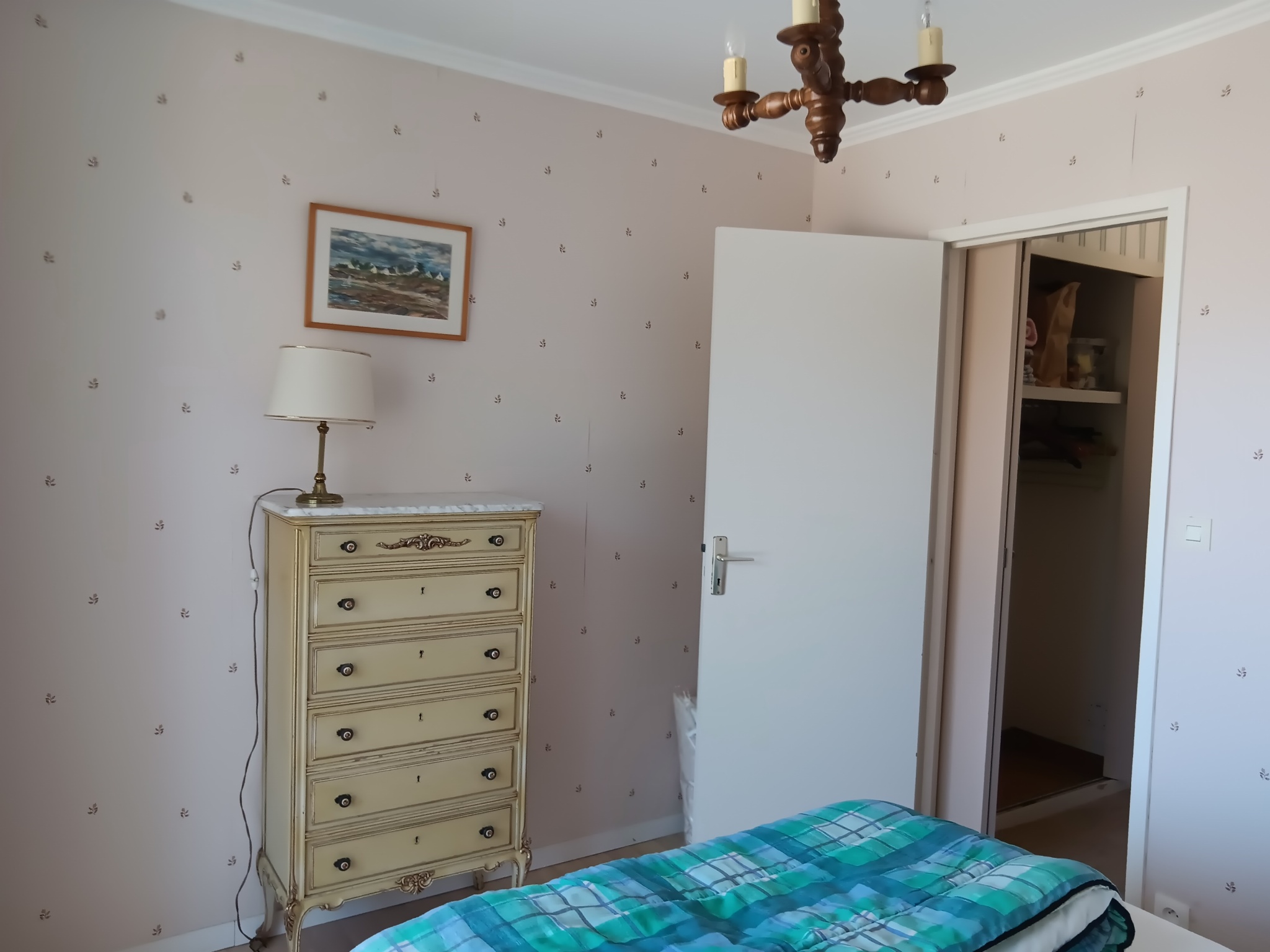 Appartement T2 situé au 2ème étage d’une résidence face mer avec ascenseur, comprenant : Entrée avec placard-penderie - Cuisine ouverte avec table de cuisson vitro, four, réfrigérateur top 3*, lave-vaisselle, micro-ondes - Séjour avec banquette (2 lits empilés ikea = 2 couchages 80X200 cm), 2 fauteuils en rotin, table avec chaises plastique (id balcon), téléviseur - Balcon face mer avec table ronde - Salle de bains avec baignoire et lavabo - 1 chambre avec 2 lits 1 pers (= 1 couchage 160 cm), 1 commode - WC indépendant avec lave-linge. Accès wi-fi.