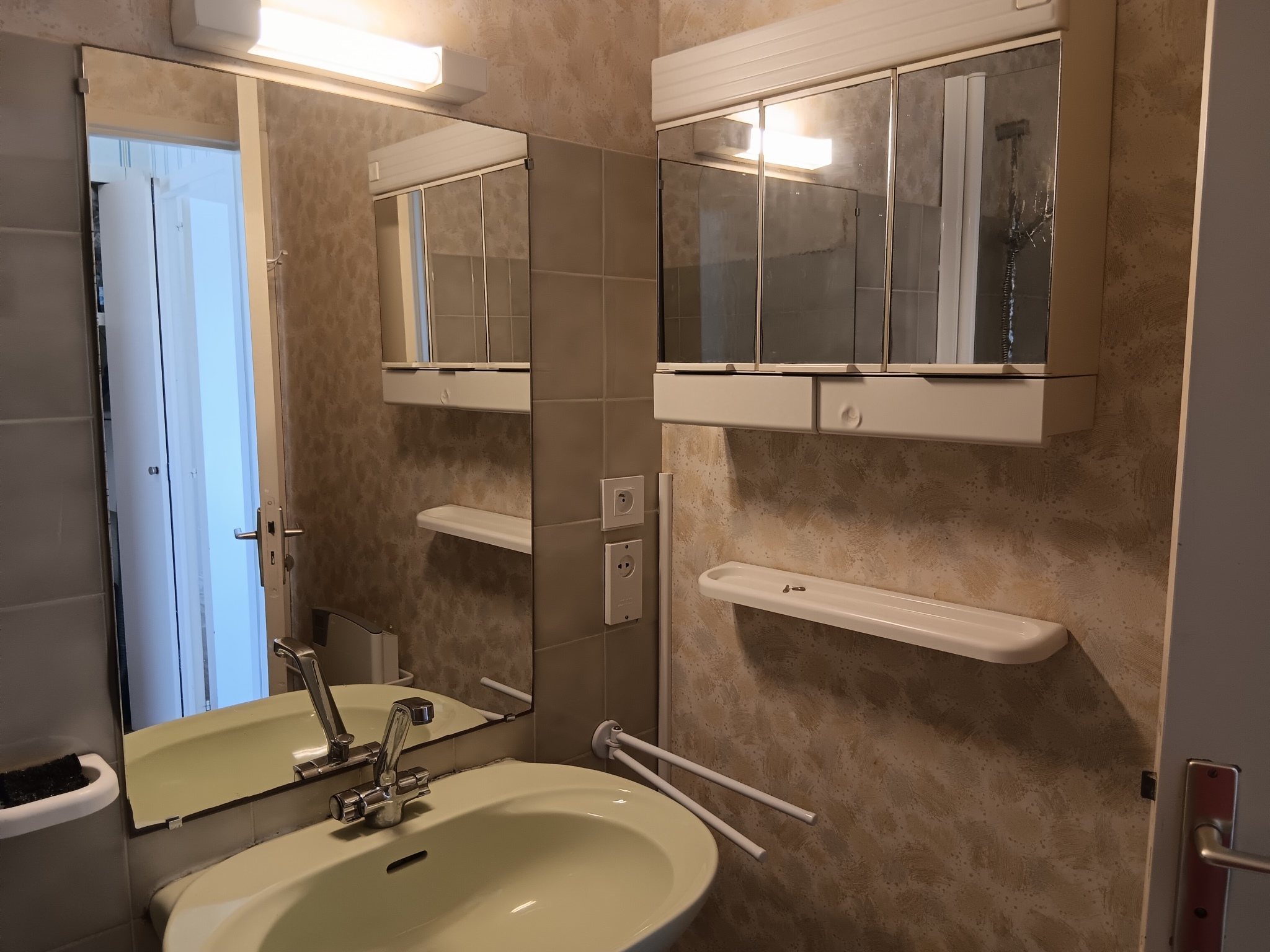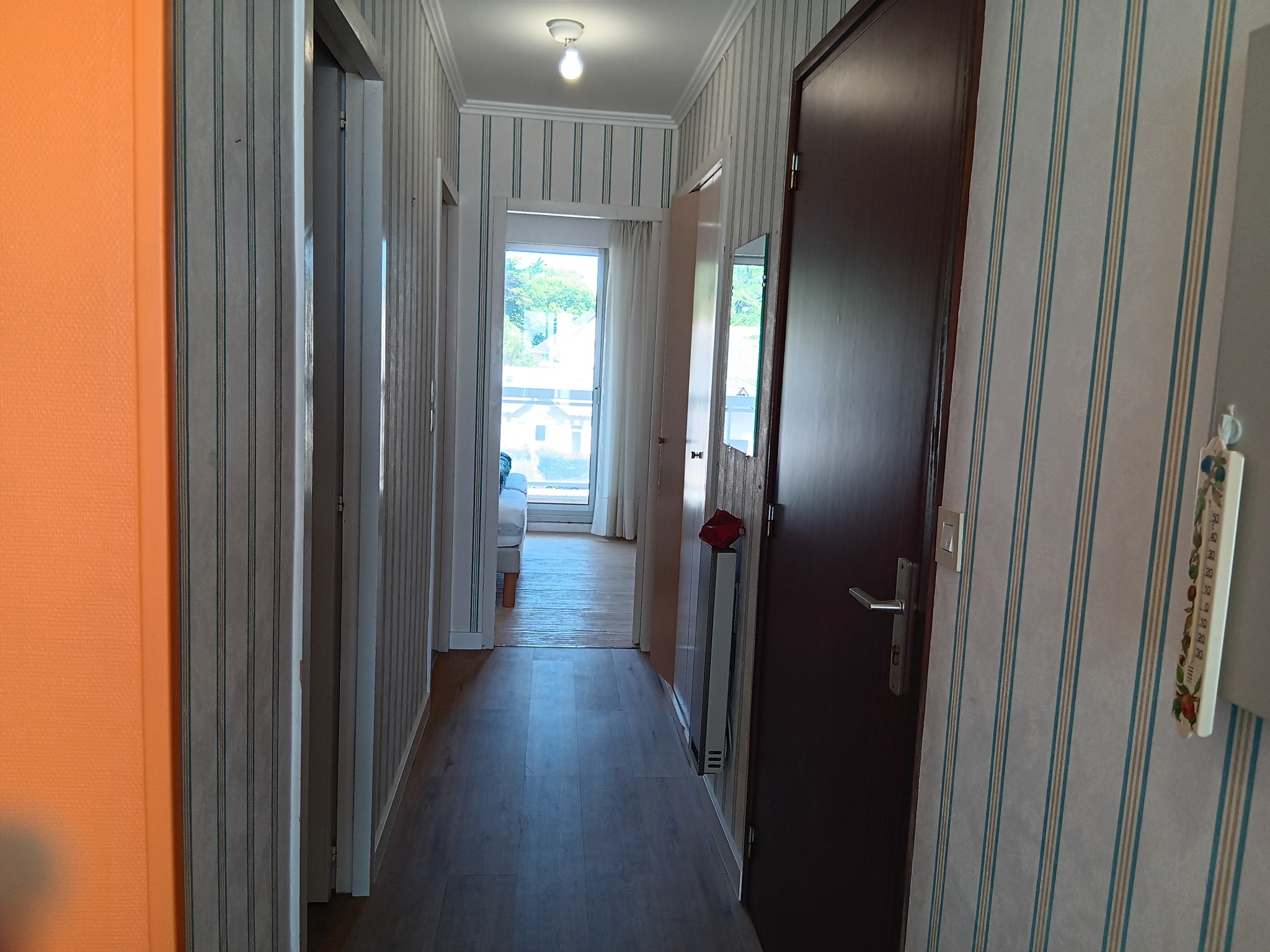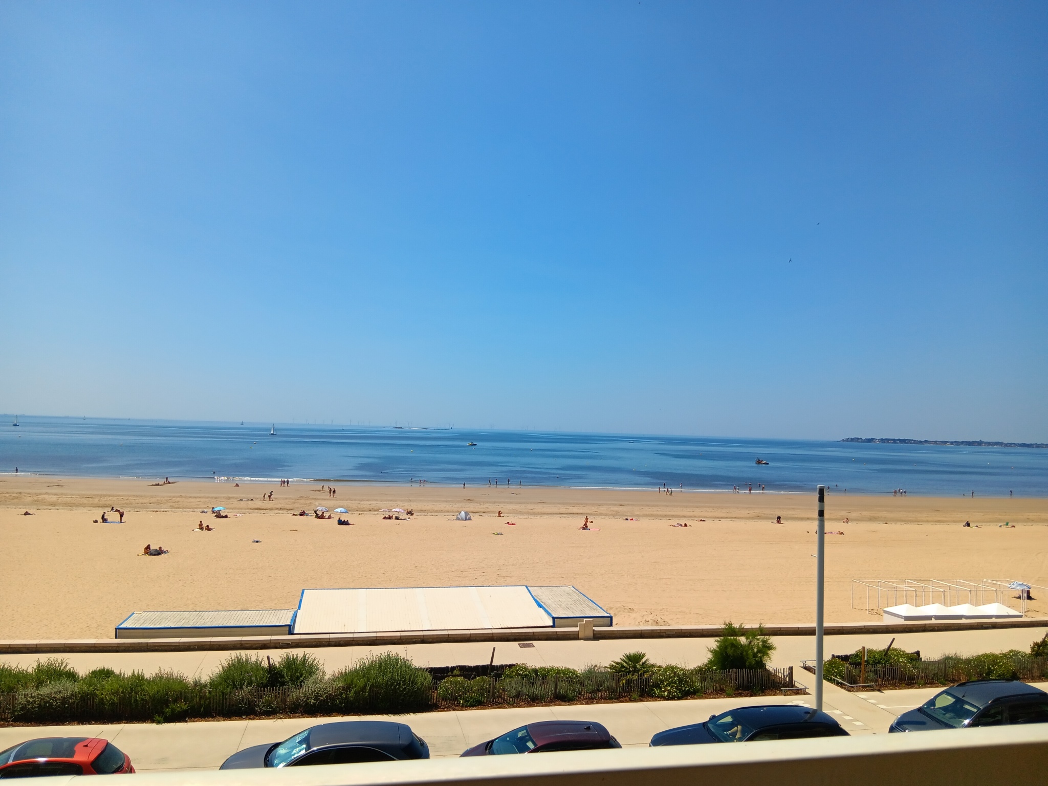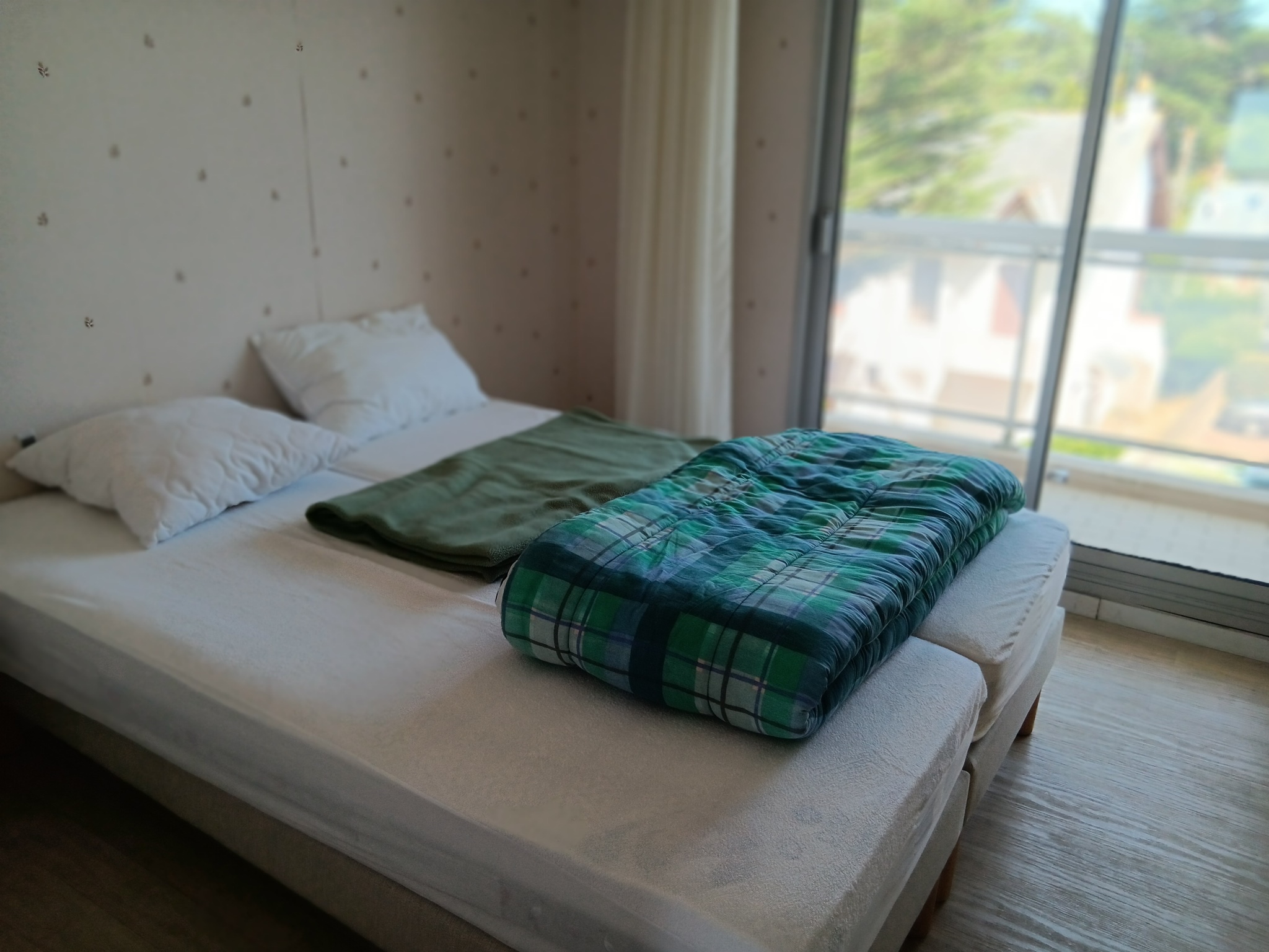 Appartement T2 situé au 2ème étage d’une résidence face mer avec ascenseur, comprenant : Entrée avec placard-penderie - Cuisine ouverte avec table de cuisson vitro, four, réfrigérateur top 3*, lave-vaisselle, micro-ondes - Séjour avec banquette (2 lits empilés ikea = 2 couchages 80X200 cm), 2 fauteuils en rotin, table avec chaises plastique (id balcon), téléviseur - Balcon face mer avec table ronde - Salle de bains avec baignoire et lavabo - 1 chambre avec 2 lits 1 pers (= 1 couchage 160 cm), 1 commode - WC indépendant avec lave-linge. Accès wi-fi.
