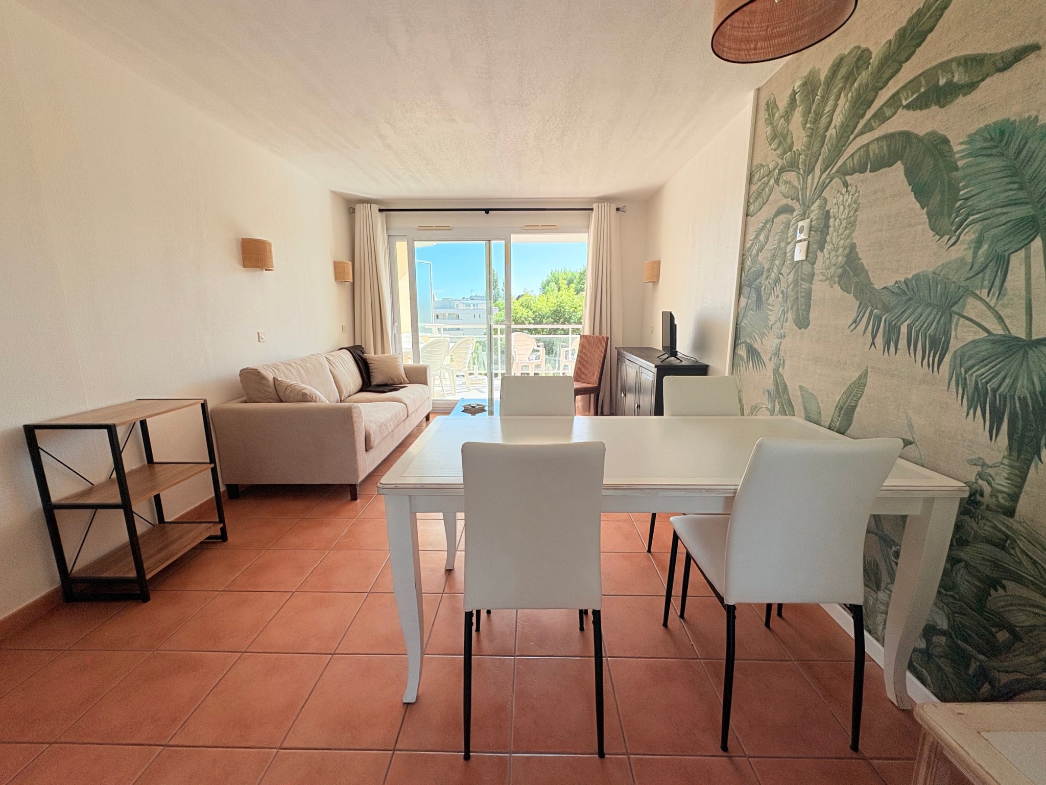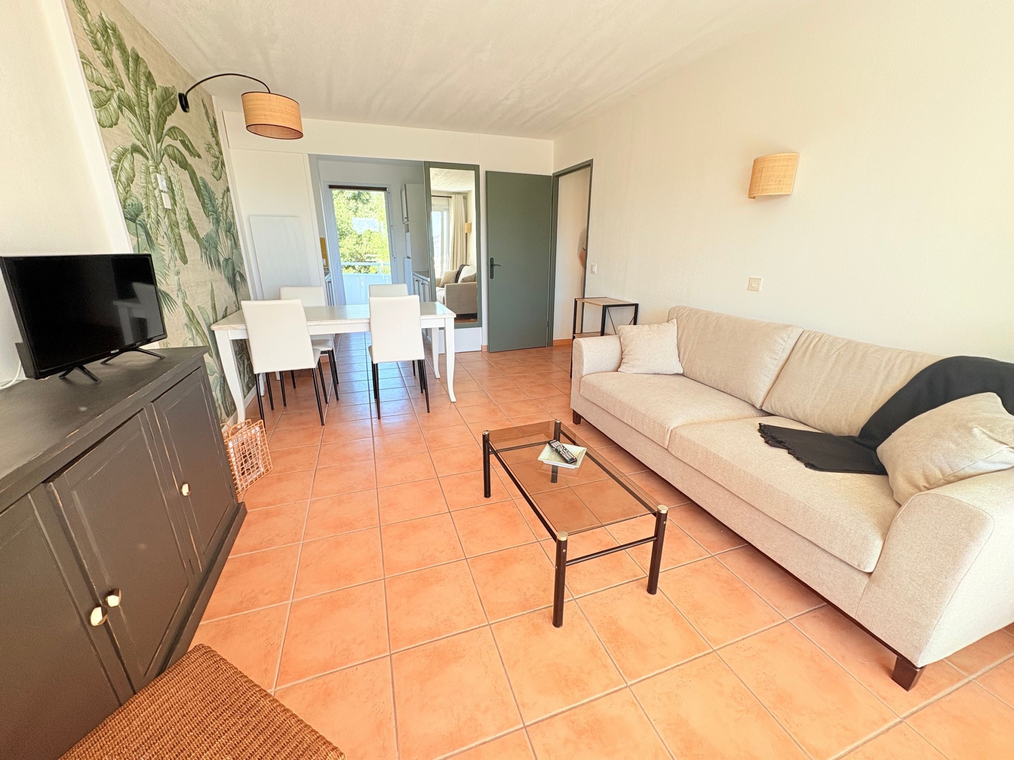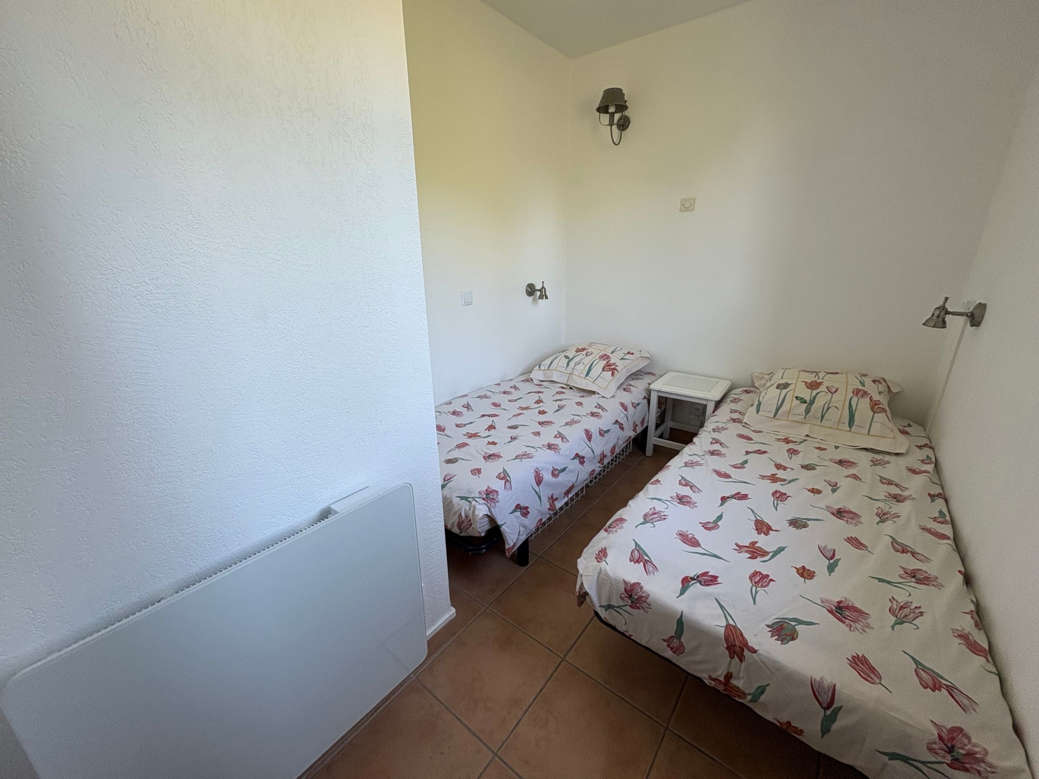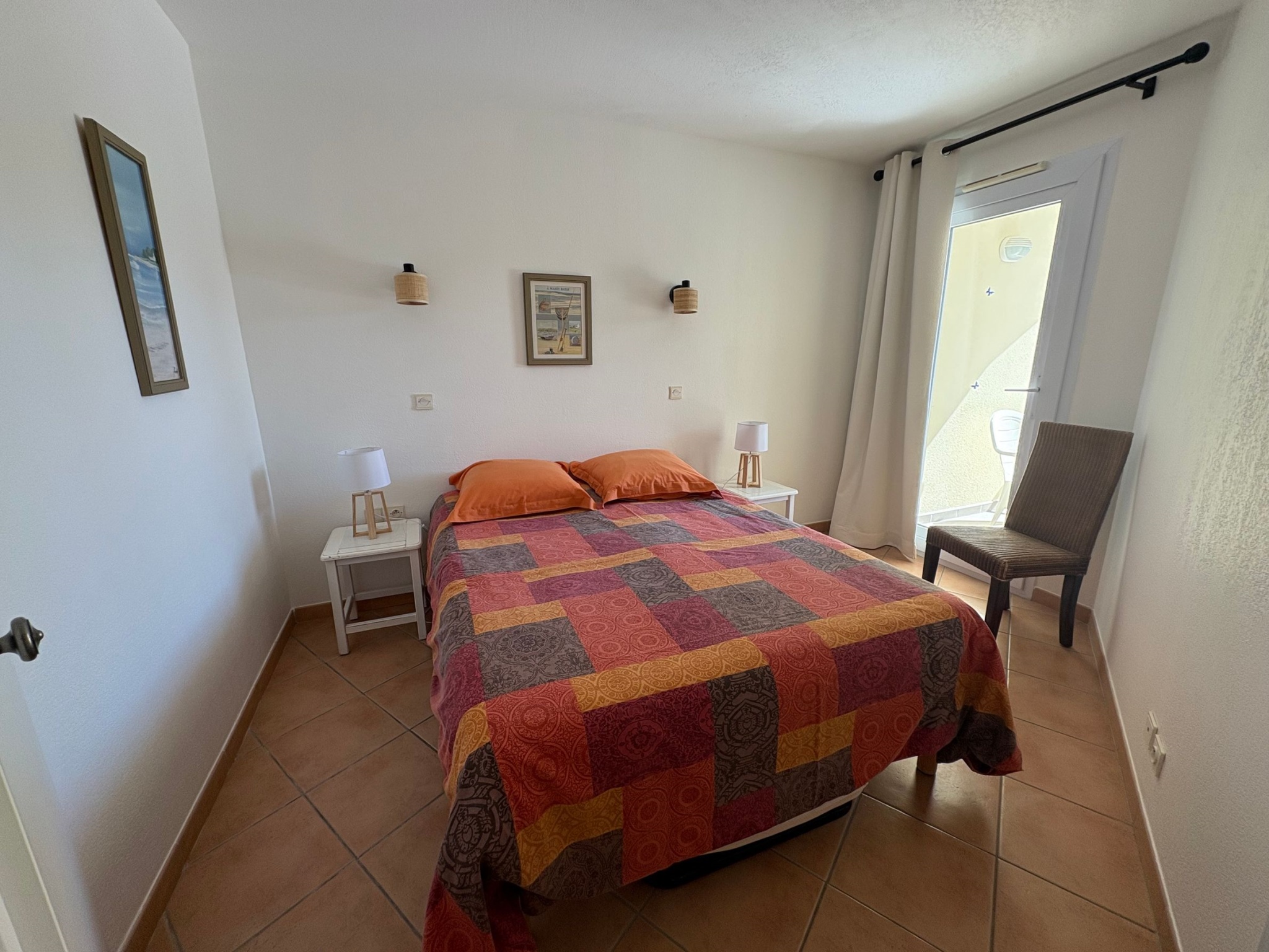 Bât K 'les lauriers', au 3ème étage, appartement composé de : séjour ouvrant sur balcon avec vue sur parc et piscines, coin-cuisine (ouvrant sur petit balcon) aménagé/équipé (plaque cuisson vitrocéramique, lave-vaisselle, réfrigérateur/congélateur, micro-ondes/gill), 1 chambre avec lit 140 cm et penderie, 1 chambre avec 2 lits enfants 80 cm et bacs de rangement sous lits, salle de bains, wc indép, 1 place de stationnement extérieur n°328